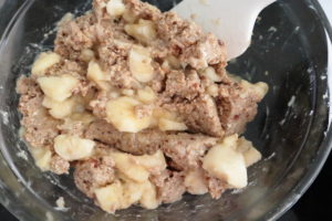 • Fold the chopped bananas into the dough or the chopped apple.